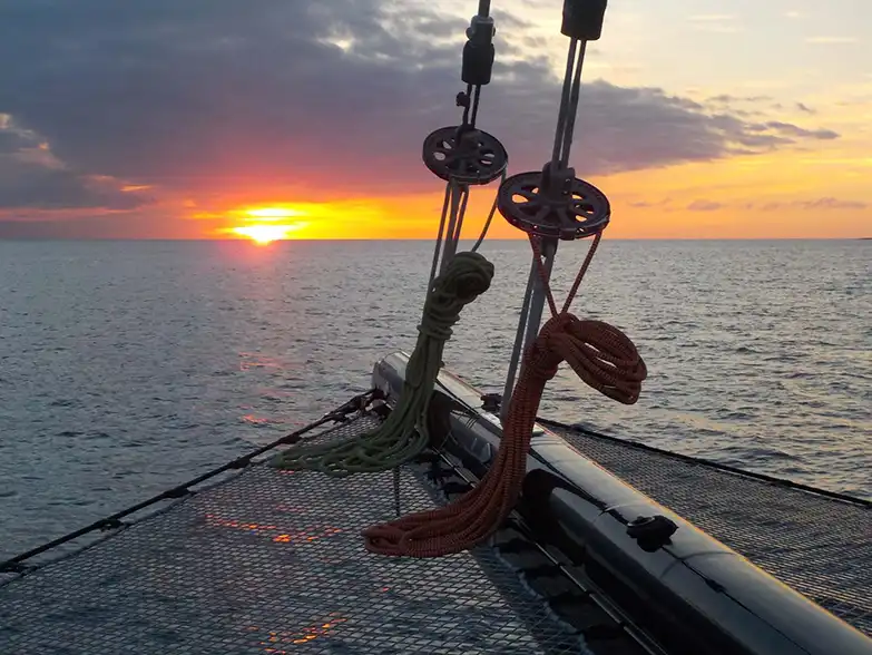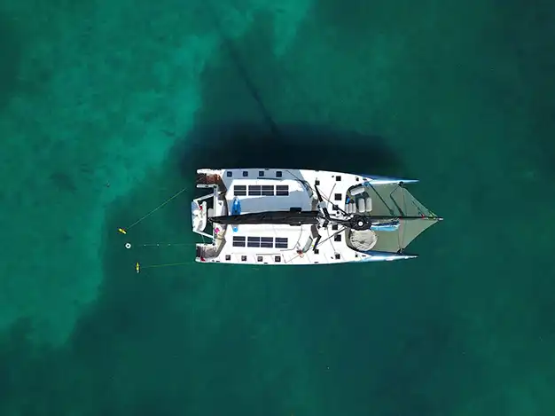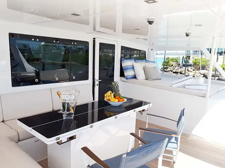 Con 4 cabinas dobles en suite + 1 cabina para la tripulación, este catamarán es ideal para el confort y la privacidad de los huéspedes. Su salón con vista 360°, el amplio cockpit de popa y su espacioso trampolín garantizan una vida a bordo relajada y conectada con el mar.