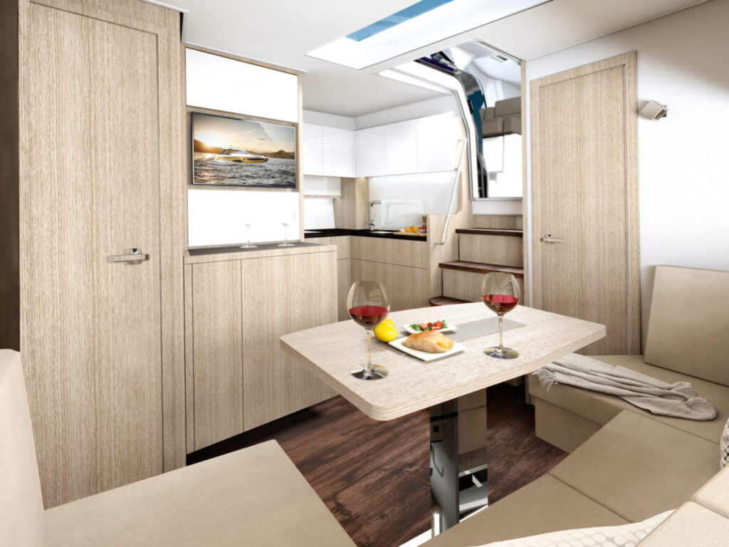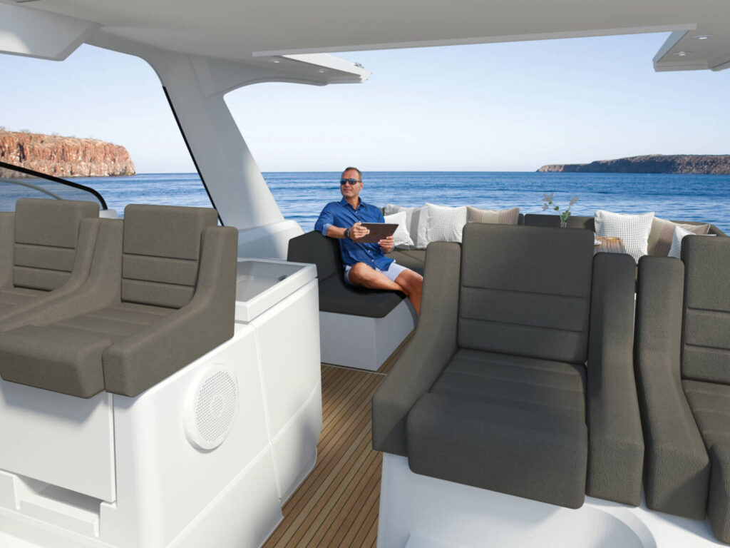 Su relajado estilo «descapotable» se adapta perfectamente al disfrute de la vida al aire libre. La cubierta abierta y práctica lo convierte en el barco ideal para recibir a los invitados y a la familia y estar entretenido todo el día.