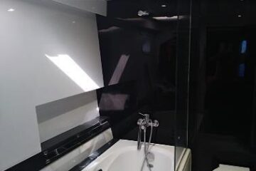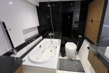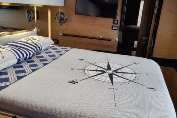 Tres cabinas, tres baños, 2 x 320 HP Volvo Penta D4 con display Volvo de 7” en el puesto de mando.