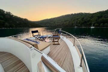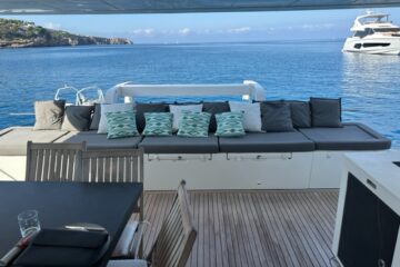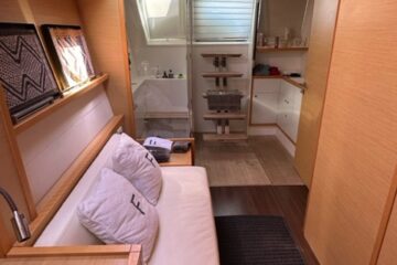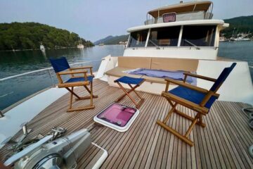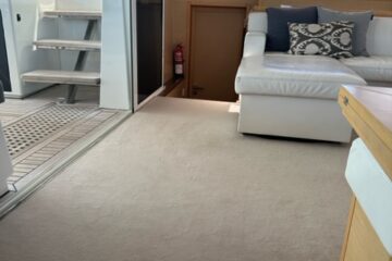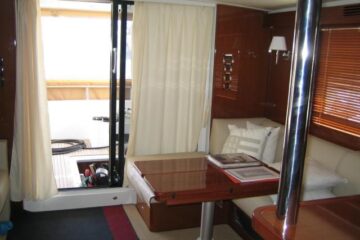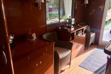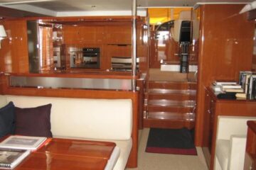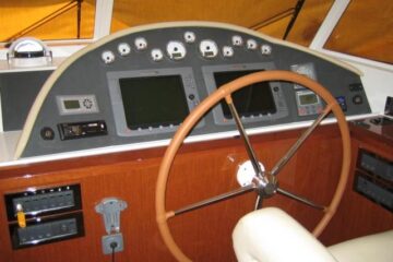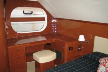 Tres cabinas, tres baños, 2 x 320 HP Volvo Penta D4 con display Volvo de 7” en el puesto de mando.
